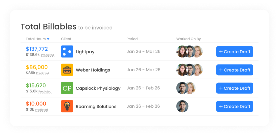 Get real-time insights into how each client, project and person is performing